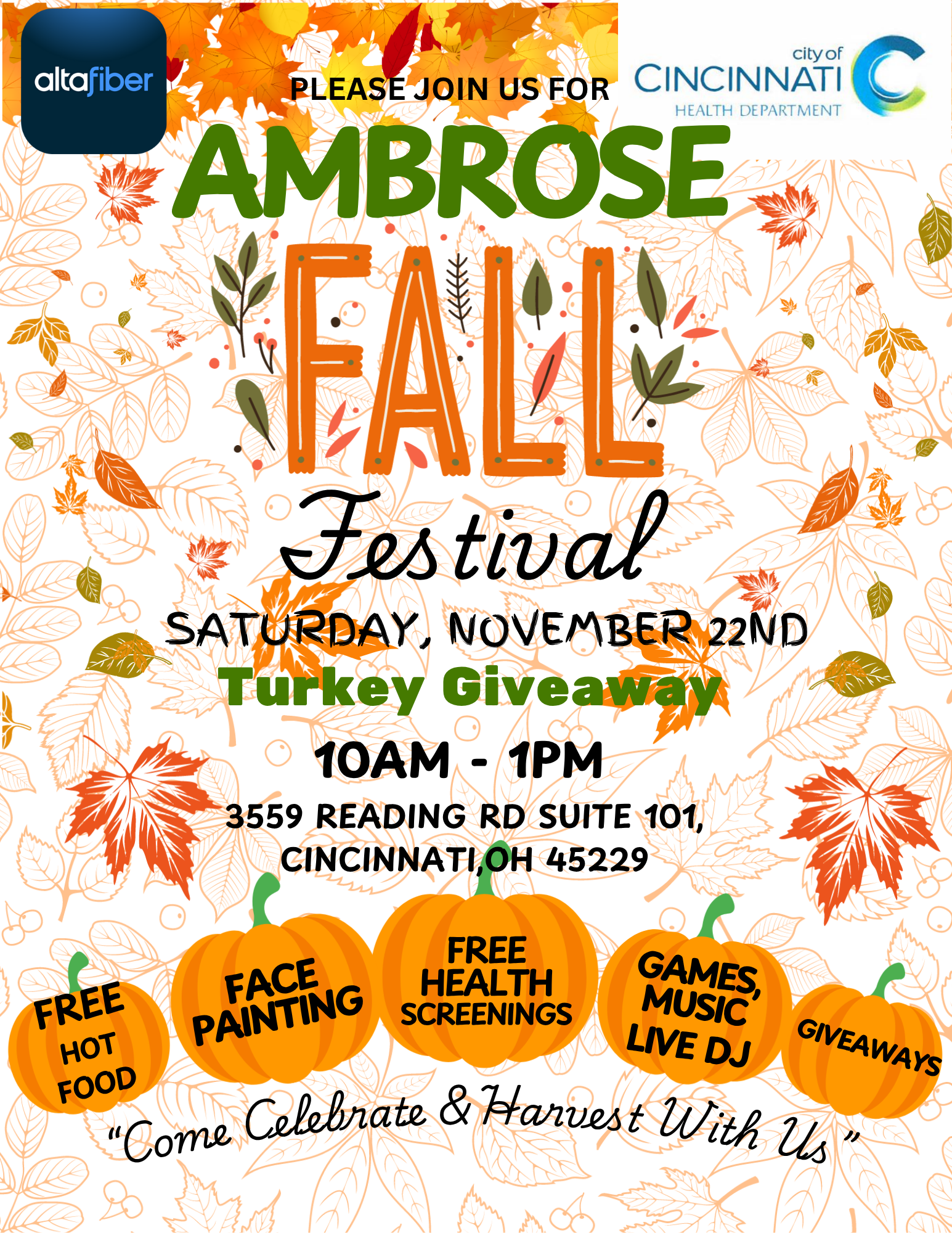 The Ambrose H. Clement Health Center invites you to join us for our Annual Fall Event on Saturday, November 22, 2025, from 10:00 AM to 1:00 PM. This family-friendly celebration brings together community members, local partners, and UC Health to promote wellness, connection, and fun!